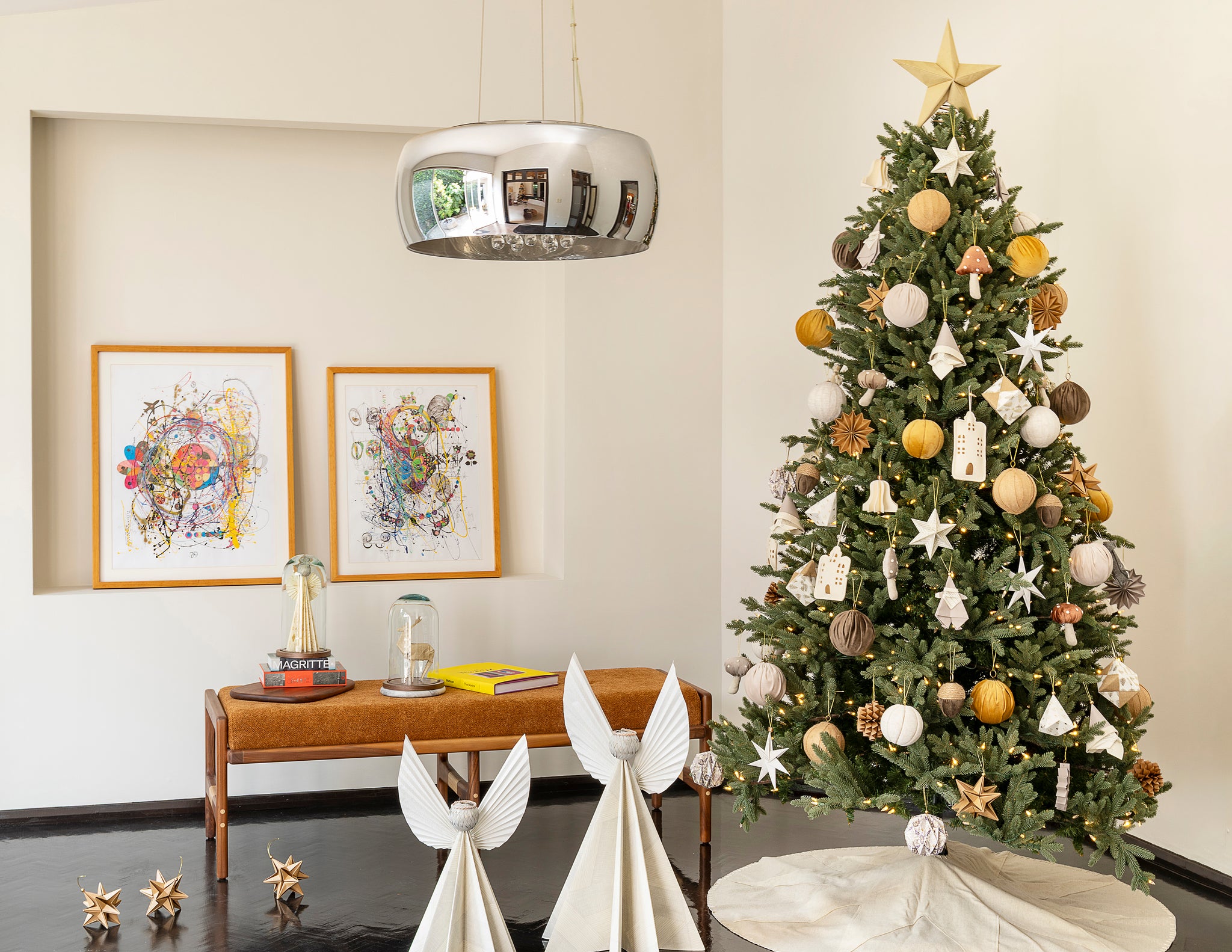 Cada esfera representa una casita distinta, con detalles recortados que dejan pasar la luz y crean un efecto acogedor y encantador. Están hechas a mano con precisión y cuidado, inspiradas en los pequeños pueblos navideños llenos de encanto y tradición.