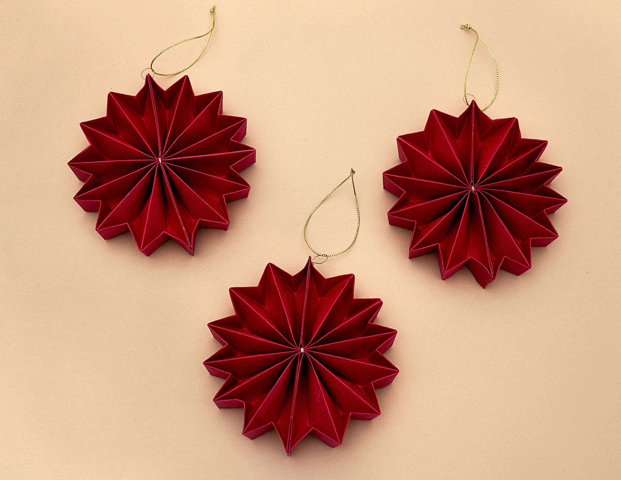 Estas esferas tipo estrella de acordeón están hechas a mano con papel de alta calidad, creando una estructura plegada que juega con la luz, las sombras y las texturas. Su diseño tridimensional las hace súper lucidoras, aportando volumen, movimiento y elegancia a cualquier árbol o rincón navideño.