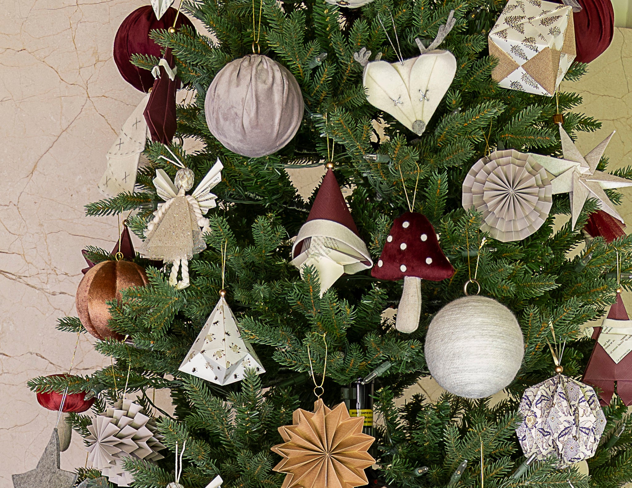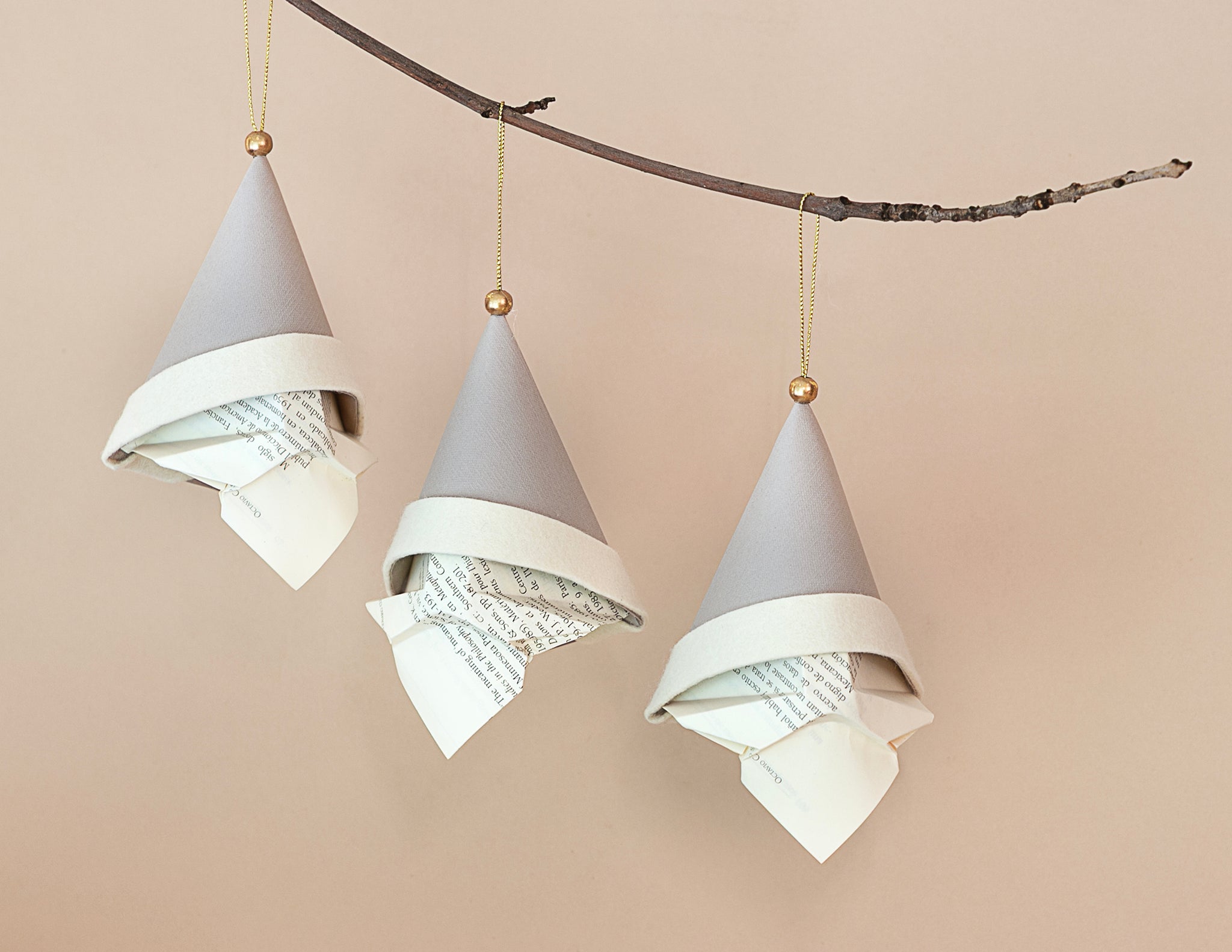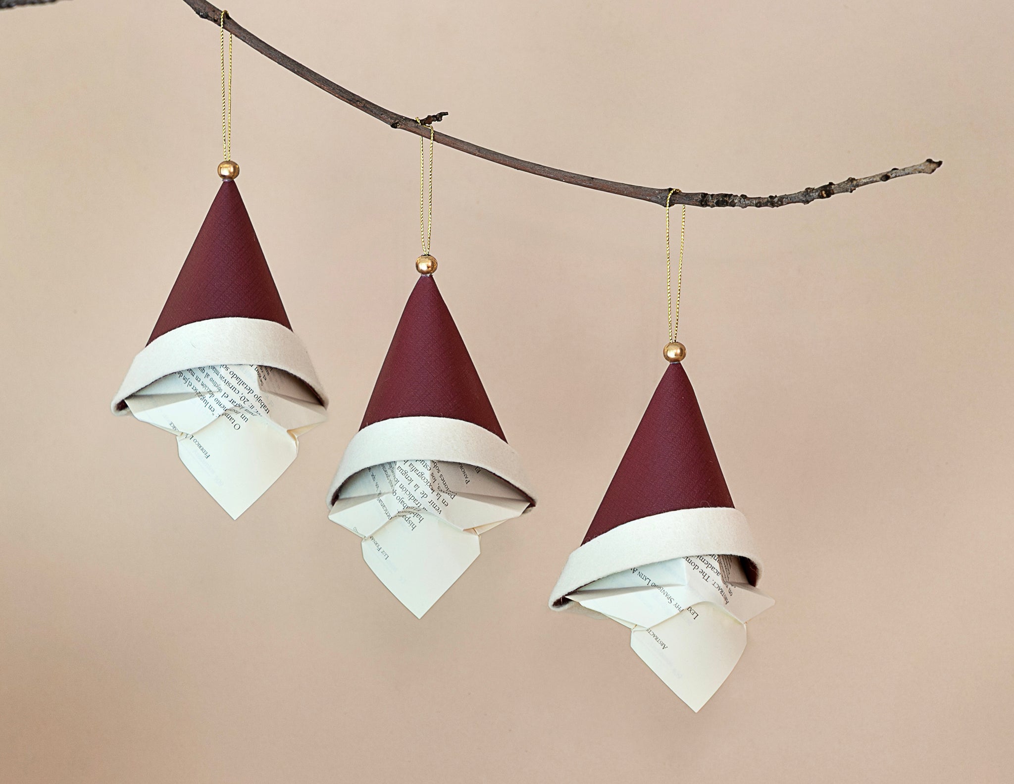 Estas esferas en forma de gorro de Santa Claus están hechas a mano con materiales suaves y de alta calidad. El tejido rojo intenso se combina con una base hueso de lana, logrando un contraste cálido, festivo y muy elegante.