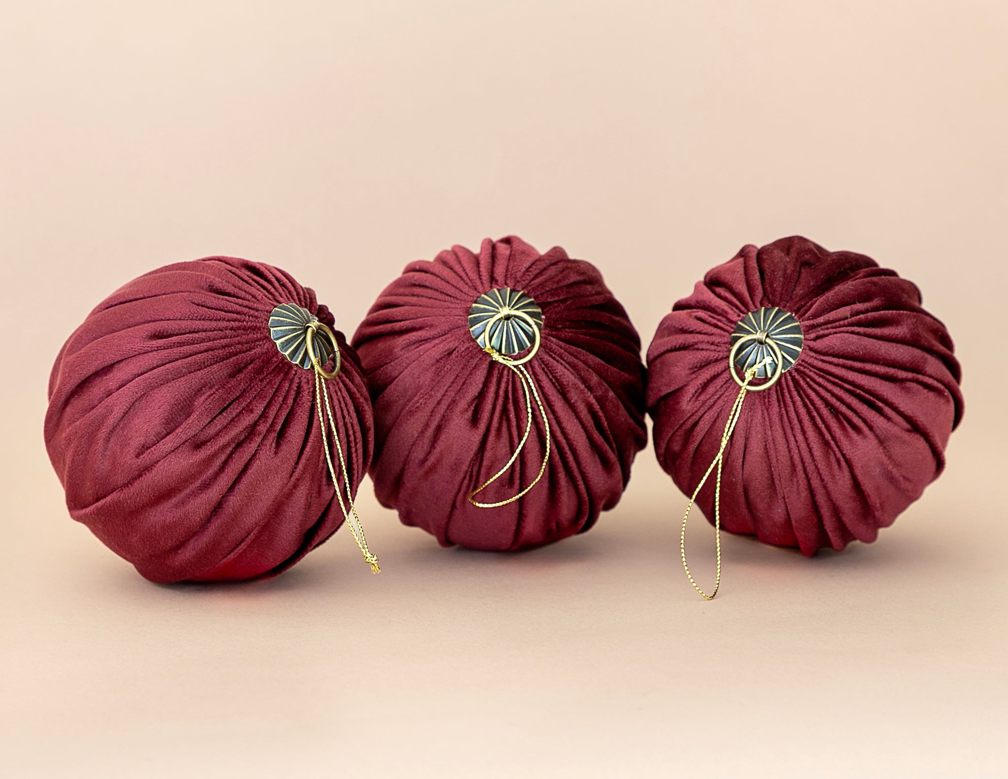 Nuestras esferas de terciopelo están cuidadosamente hechas a mano, una a una, dando como resultado piezas únicas, suaves al tacto y visualmente impactantes. El diseño de pliegues aporta volumen y textura, creando un efecto sofisticado y muy estético en tu árbol o decoración.